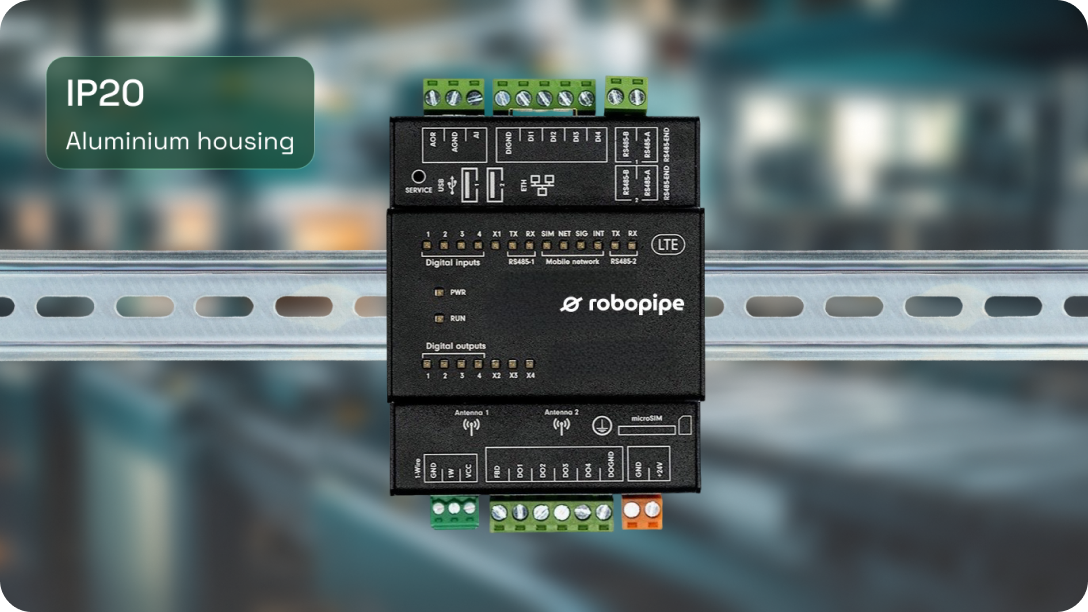Controller feature RS485 serial lines by default. This type of interface usually utilizes the Modbus RTU protocol and can be used for communication with various devices such as energy meters, touchscreen HMI displays, controllers from other vendors, various sensors, etc. A single bus can support dozens of devices while its length can reach up to several hundred meters.